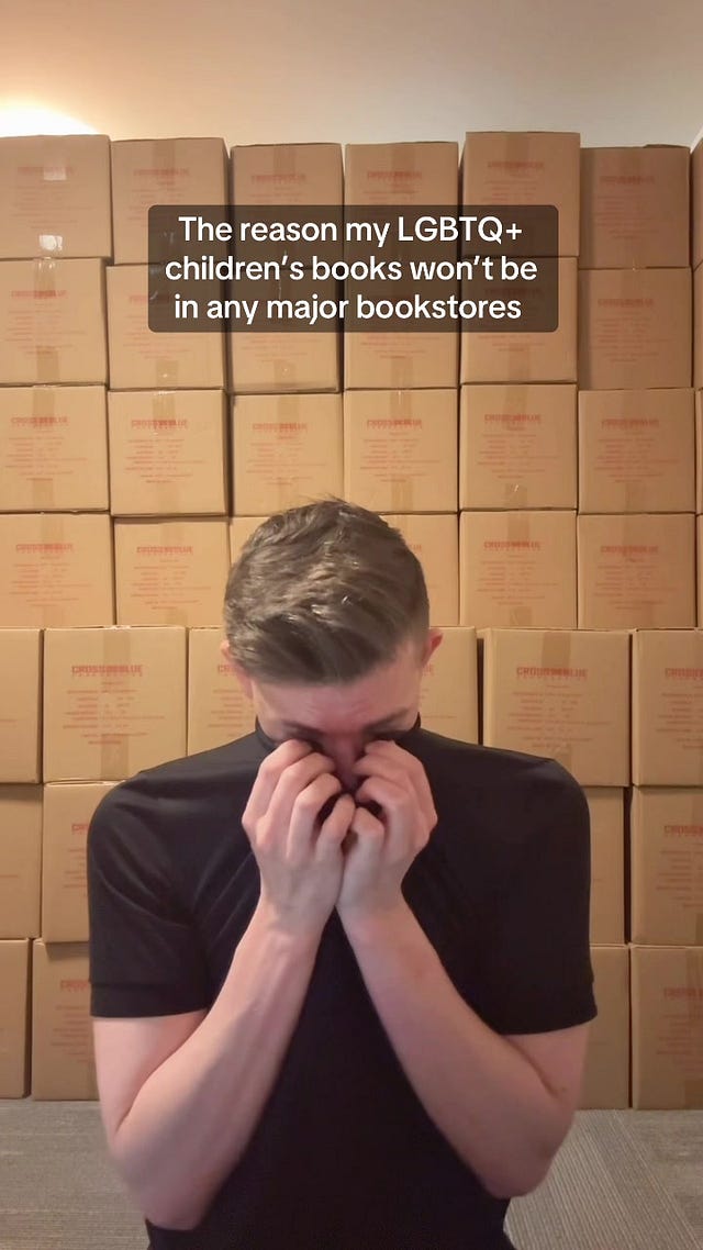 June, again pride month, Castle posted two very emotional and tearful videos which collectively got 13 million views. This time he sat in front of a wall of boxes of product and shared with his audience that “the book deal is not going through”. This video was framed as Paul Castle, the lovable indie author, being barred from another bookstore, in this case a bookstore chain. He claimed that the chain had requested that he change the title of his book from The Pengrooms to something less controversial in order to be appropriate for their children’s section. He changed the title, bought stock, but the bookstore told him they couldn’t purchase his book because they weren’t in the system they order from, Ingram. After getting in touch with Ingram they told Castle he didn’t qualify to use their system because he didn’t have ten titles.
